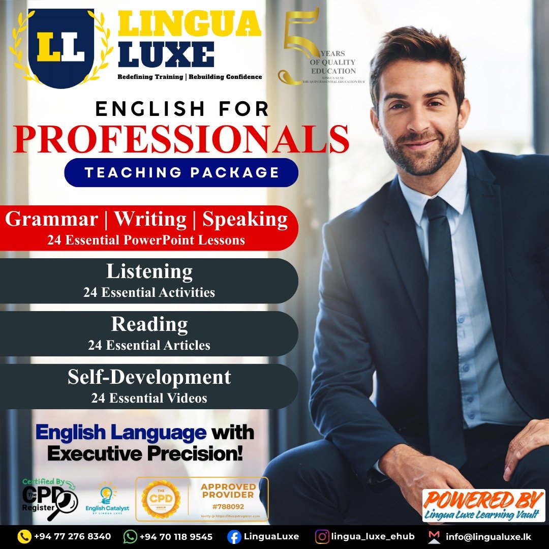 The English for Professionals Package is purpose-built for English teachers, trainers, and institutes who deliver training to executives, managers, entrepreneurs, and career-driven professionals.